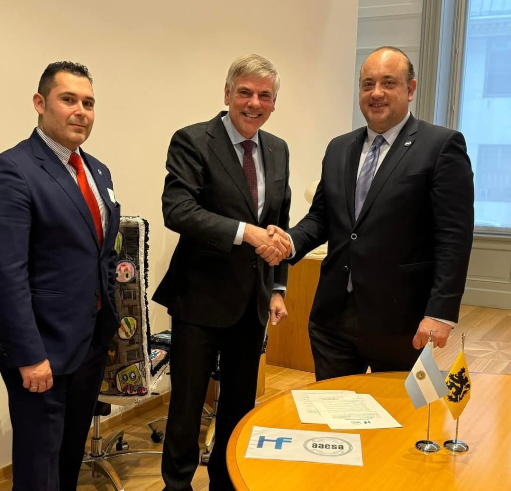 A.A.E.S.A. fue recibida oficialmente en el Parlamento flamenco el pasado 15 de enero. Enric Ravello (presidente), Manuel Quesada (secretario) y Pablo J. Davoli (delegado en Argentina) fueron invitados a una visita de cortesía a la cámara legislativa. Al final del encuentro Enric Ravello (A.A.E.S.A.) y Filip Dewinter (HERTOGFONDS VZW) firmaron un acuerdo de colaboración mutua entre las dos entidades, basados en los en los siguientes puntos: